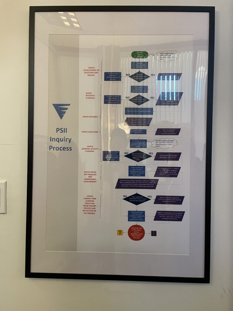 Touring around the Pacific School of Innovation and Inquiry (PSII) gave me a new perspective on what inquiry-based education can look like. In a sense it felt like they reimagined education.  My experience with inquiry education has been narrow minded. When I think of inquiry-based learning I remember Friday afternoons spent doing genius hour in grade 6. I remember attempting to learn ASL, knitting, crocheting, sewing, writing, soccer, gymnastics and a variety of other seemingly random hobbies. For me genius hour was time spent goofing off with my friends and trying to find something that interested me. I imagine that the lack of motivation among some students to pick a topic and stay with it would be a common pitfall to this pedagogy. In learning more about PSII through the tour I learned how inquiry-based learning can benefit so many students of diverse needs and bring back the joy of school to learners who do not thrive in a traditional environment. Knowing my younger self, I am not sure if PSII would have been the place for me but I admire and appreciate how it caters to its students and can be a place where so many learners find their stride.